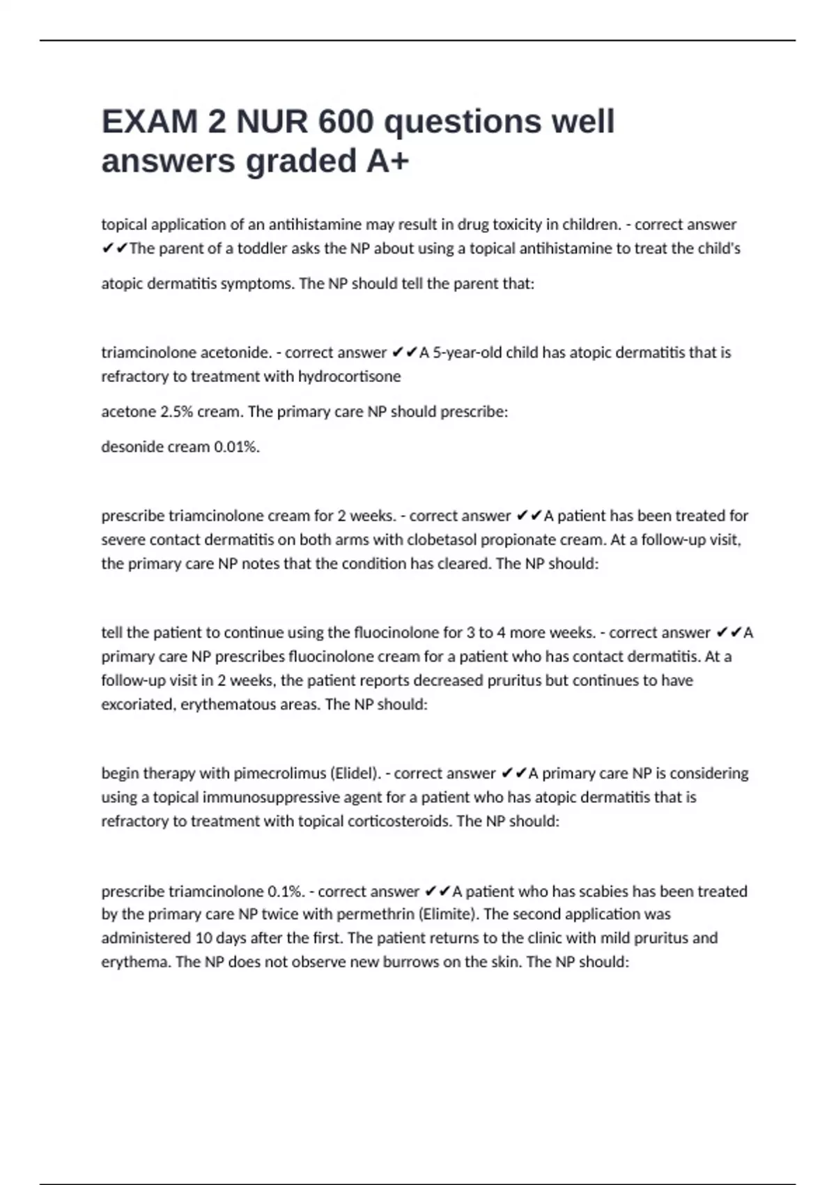 triamcinolone acetonide. - correct answer ✔✔A 5-year-old child has atopic dermatitis that is