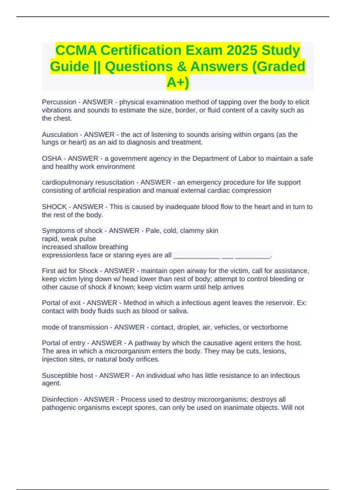 Symptoms of shock - ANSWER - Pale, cold, clammy skin