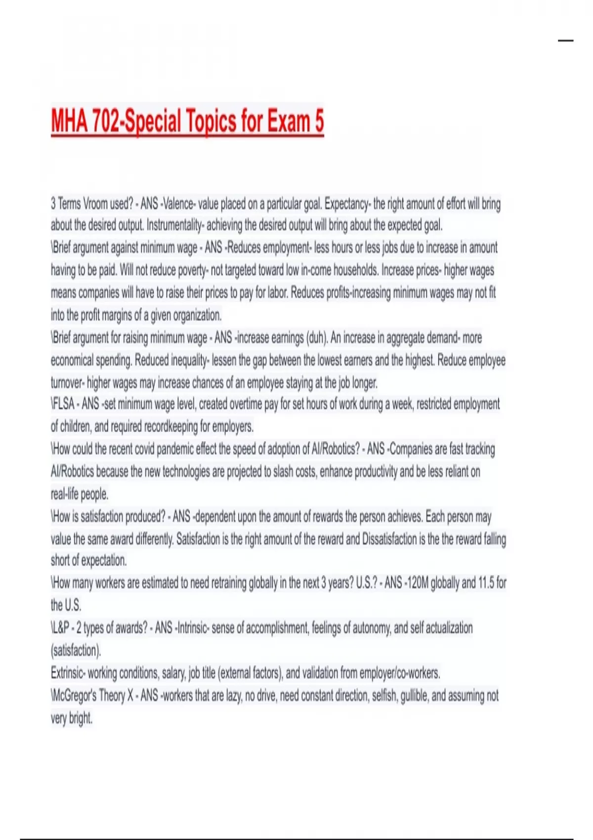 MHA 702-Special Topics for Exam 5 2025/2026 Questions With Completed Solutions.