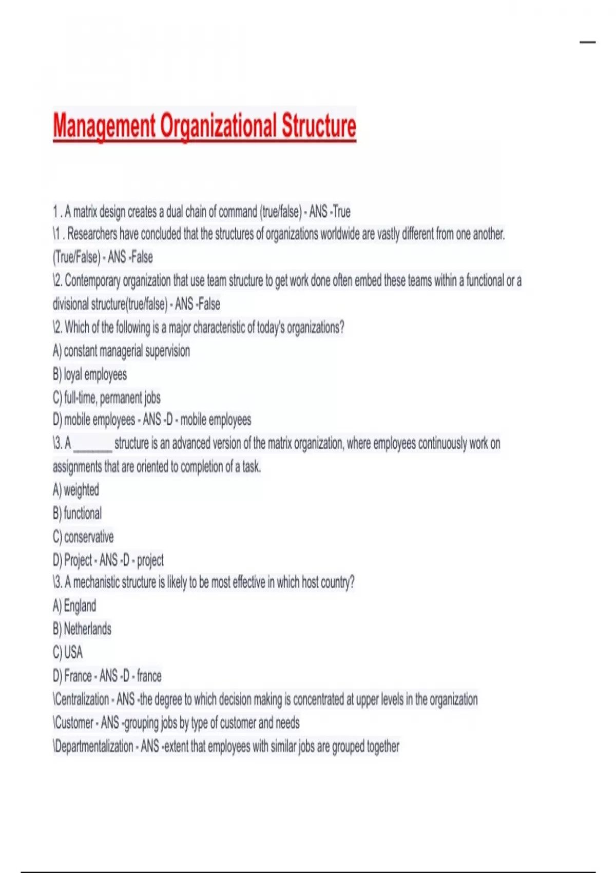 \3. A ________ structure is an advanced version of the matrix organization, where employees continuously work on