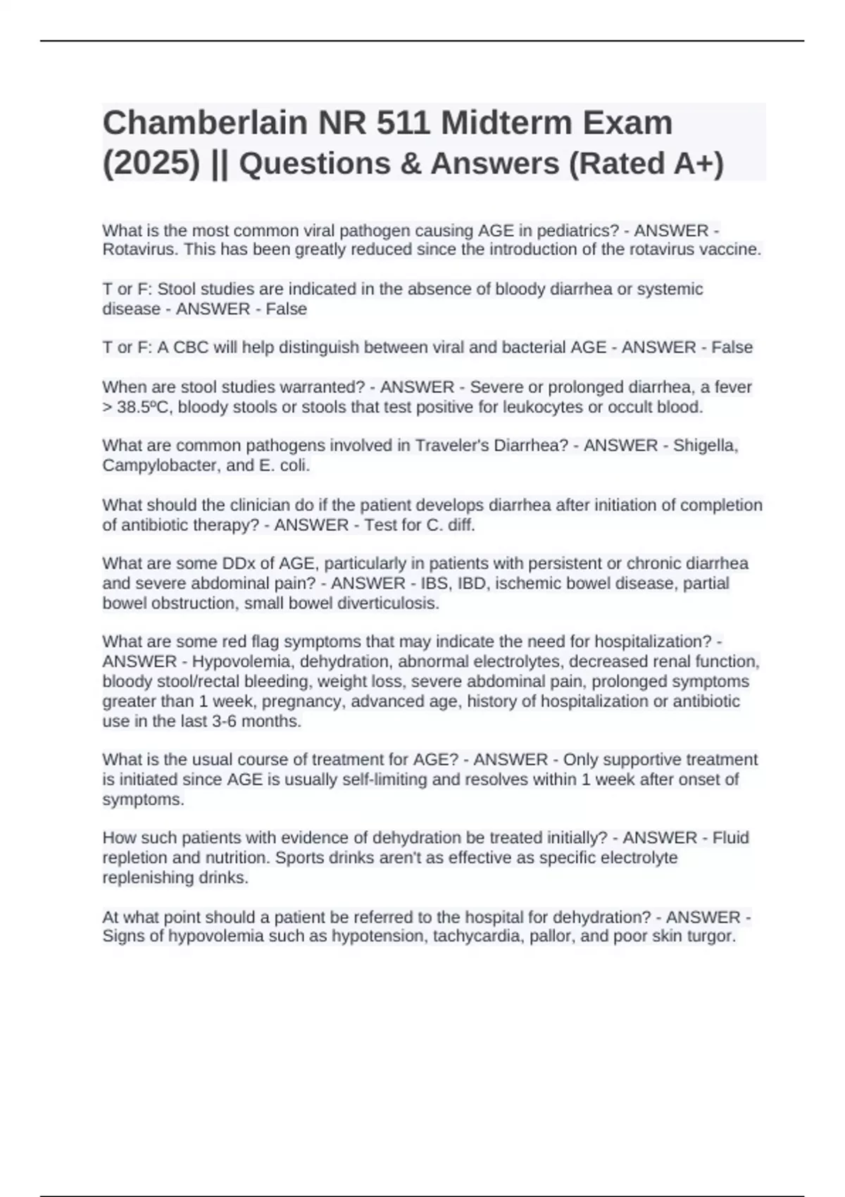 Chamberlain NR 511 Midterm Exam (2025) || Questions & Answers (Rated A+)