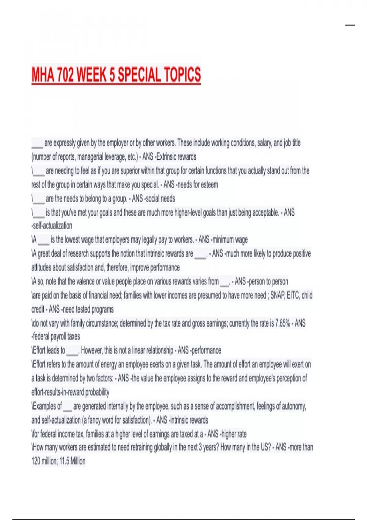 MHA 702 WEEK 5 SPECIAL TOPICS
