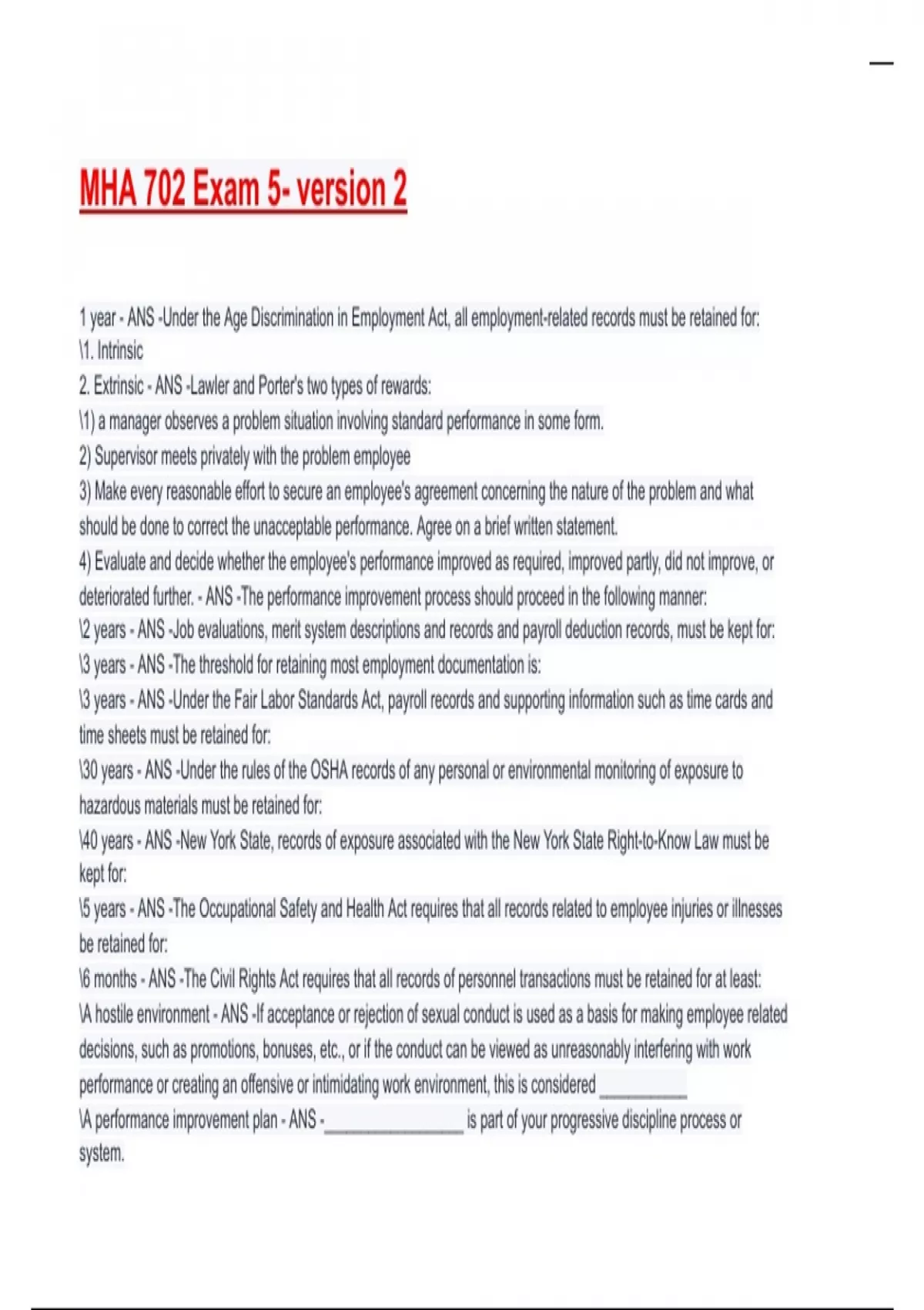 MHA 702 Exam 5- version 2