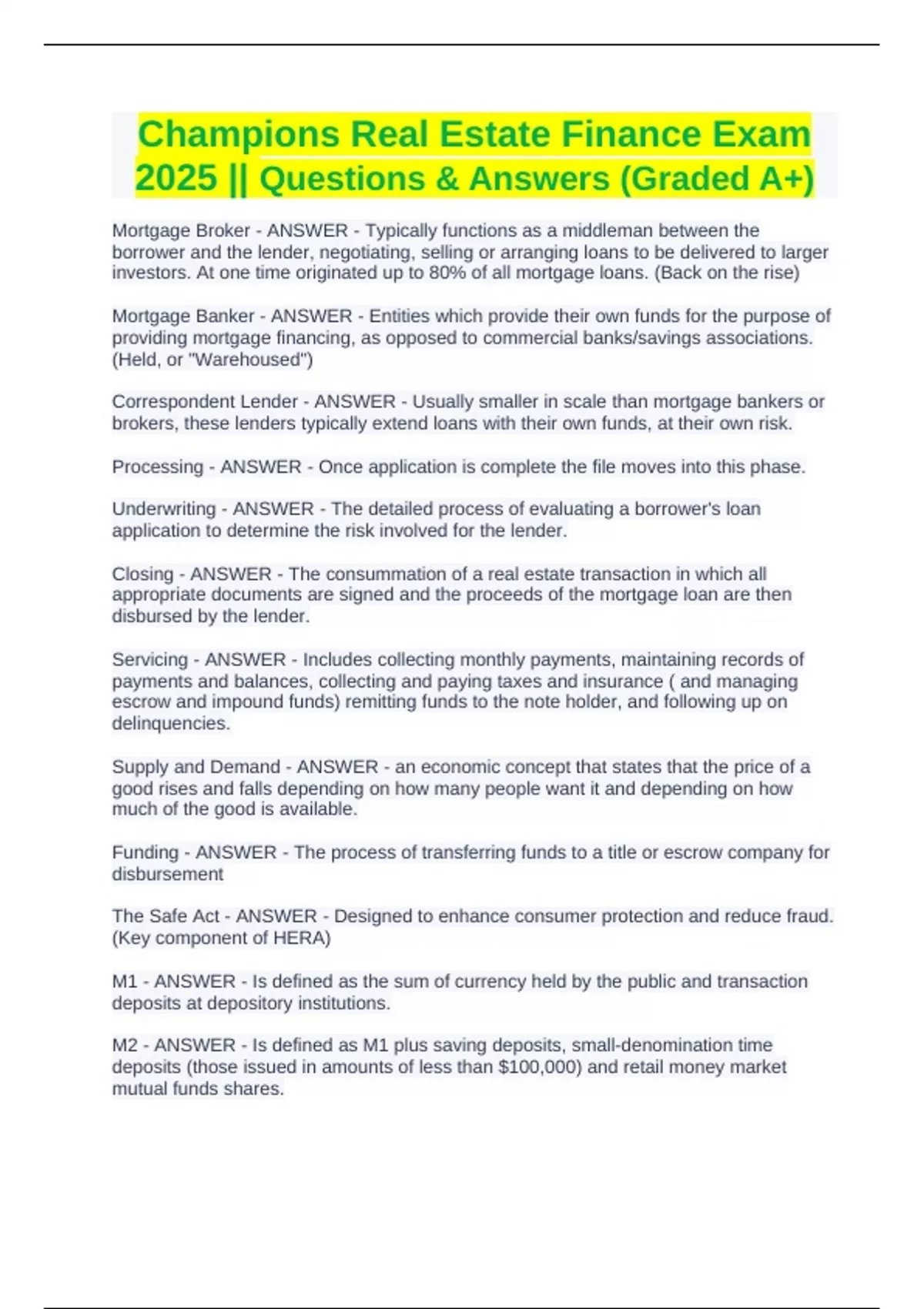 Mortgage Broker - ANSWER - Typically functions as a middleman between the