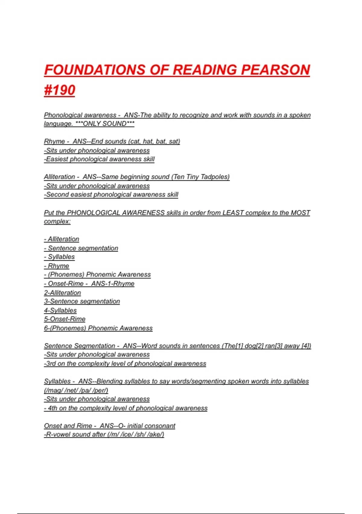 FOUNDATIONS OF READING PEARSON #190 EXAM QUESTIONS WITH CORRECT ANSWERS 2025/2026( A+ GRADED 100% VERIFIED).