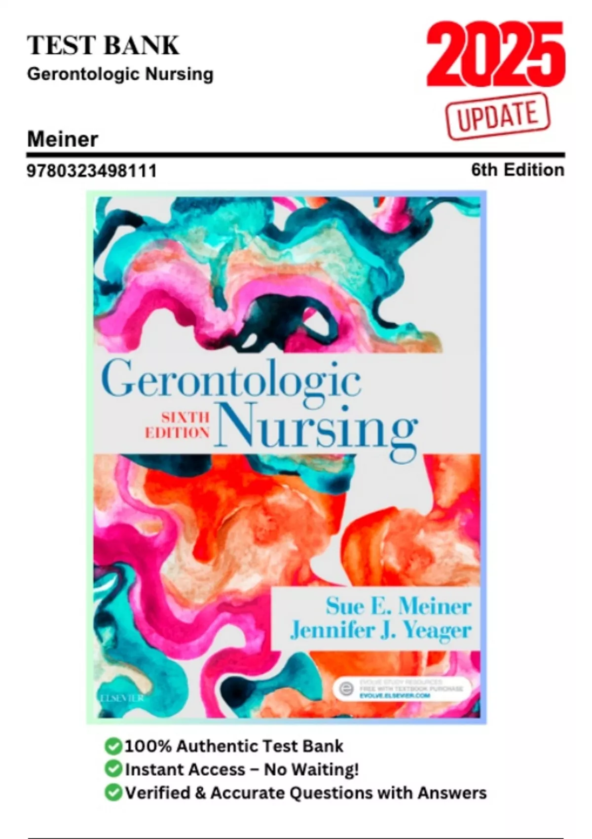 Comprehensive Test Bank for Gerontologic Nursing, 6th Edition by Meiner, ISBN 9780323498111 | Chapters 1–29 | Rationales Included