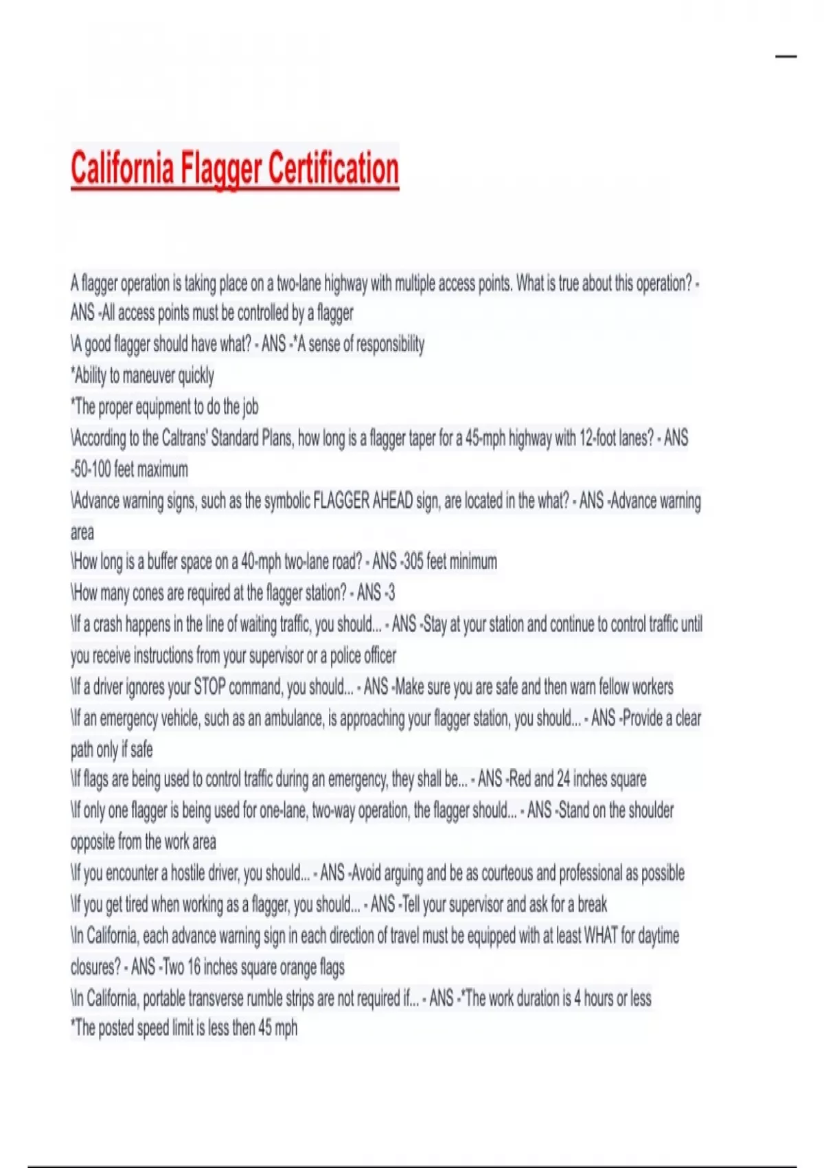 \A good flagger should have what? - ANS -*A sense of responsibility