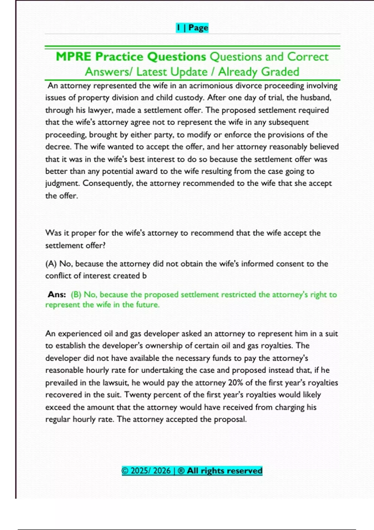 MPRE Practice Questions Questions and Correct