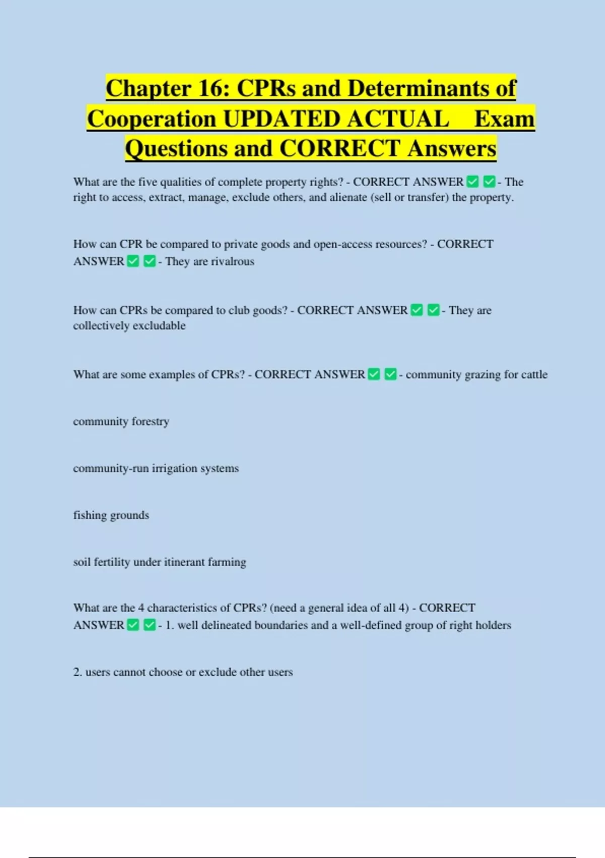 What are some examples of CPRs? - CORRECT ANSWER - community grazing for cattle