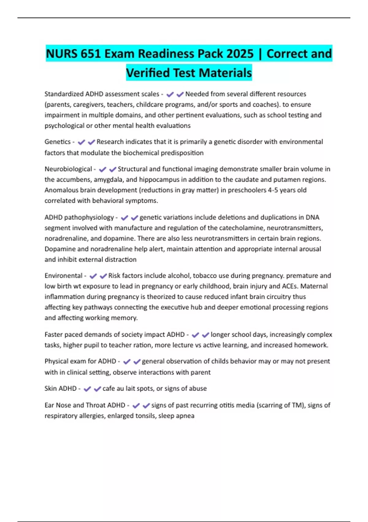 NURS 651 Exam Readiness Pack 2025 | Correct and Verified Test Materials