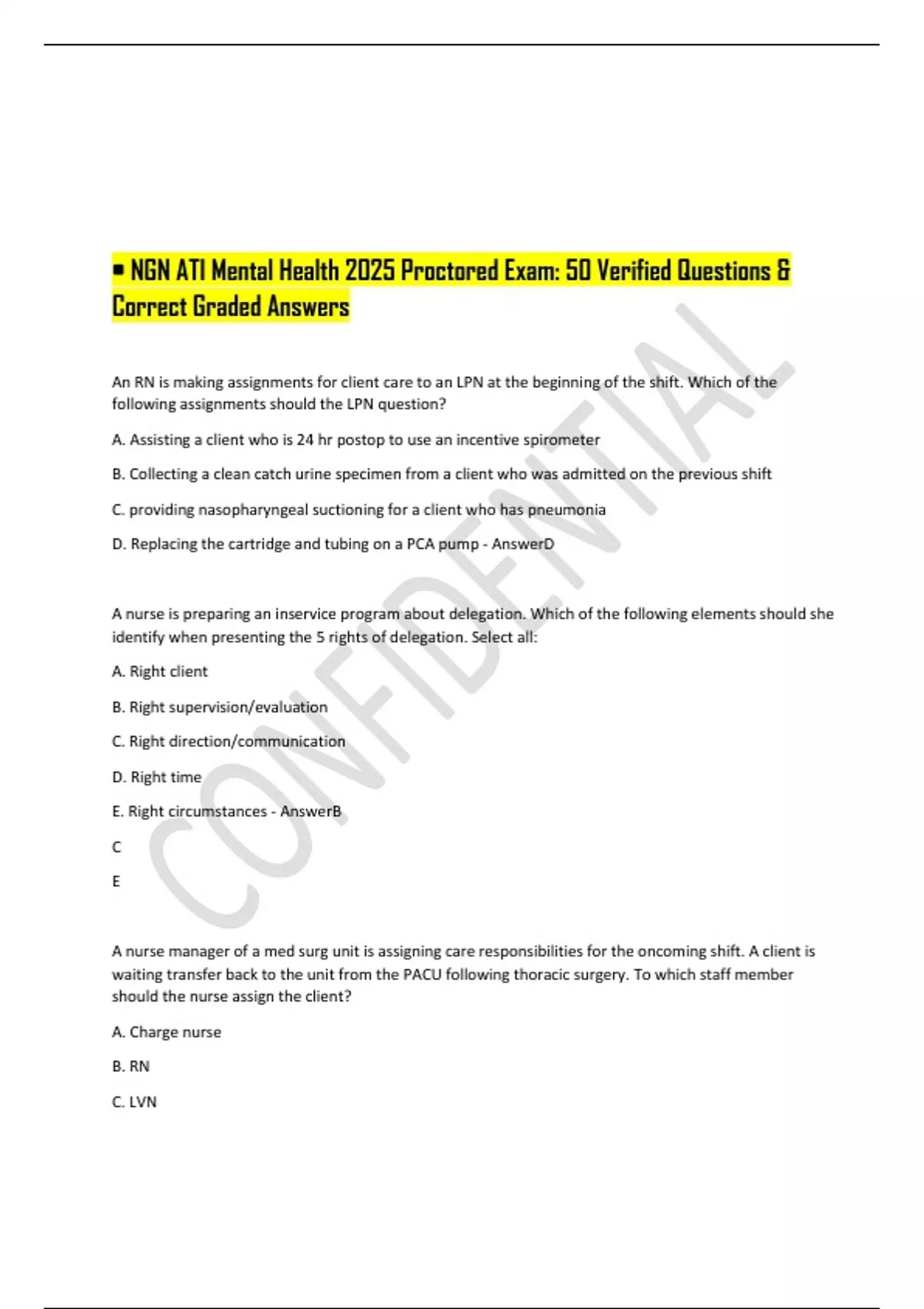 • NGN ATI Mental Health 2025 Proctored Exam: 50 Verified Questions &