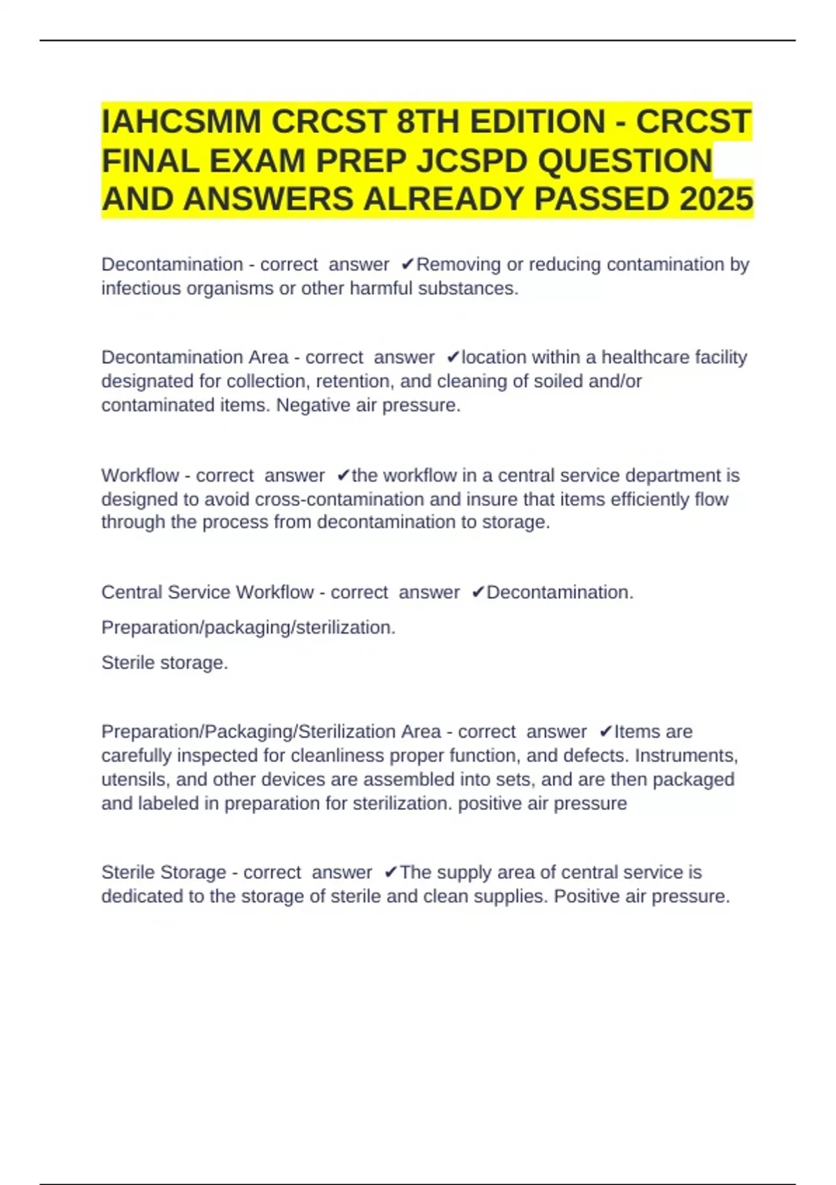 Decontamination Area - correct answer ✔location within a healthcare facility