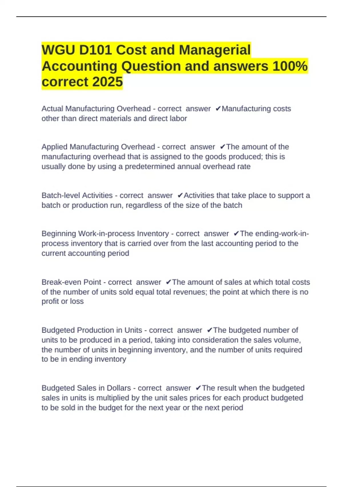 Beginning Work-in-process Inventory - correct answer ✔The ending-work-in-
