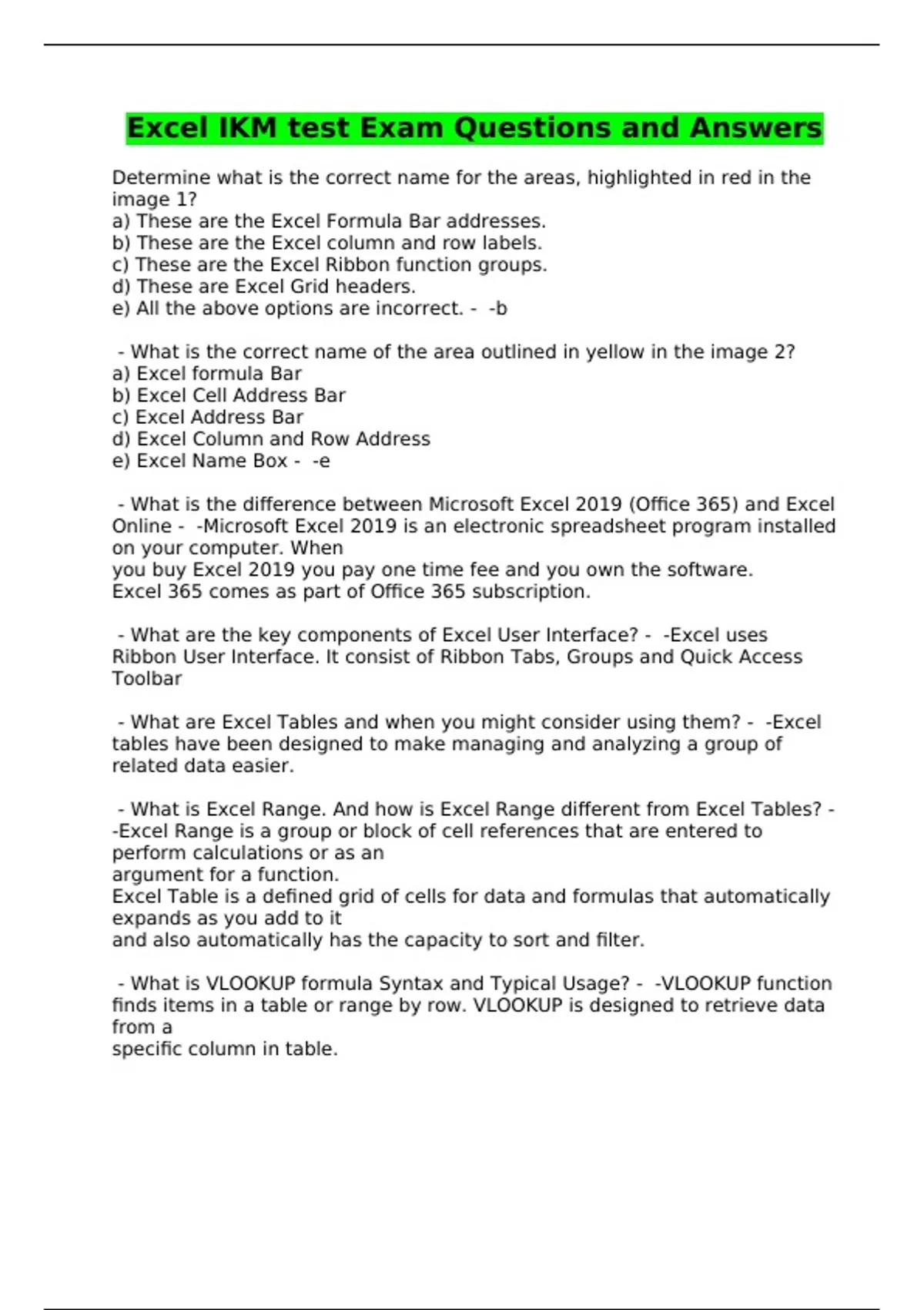 Excel IKM test Exam Questions and Answers