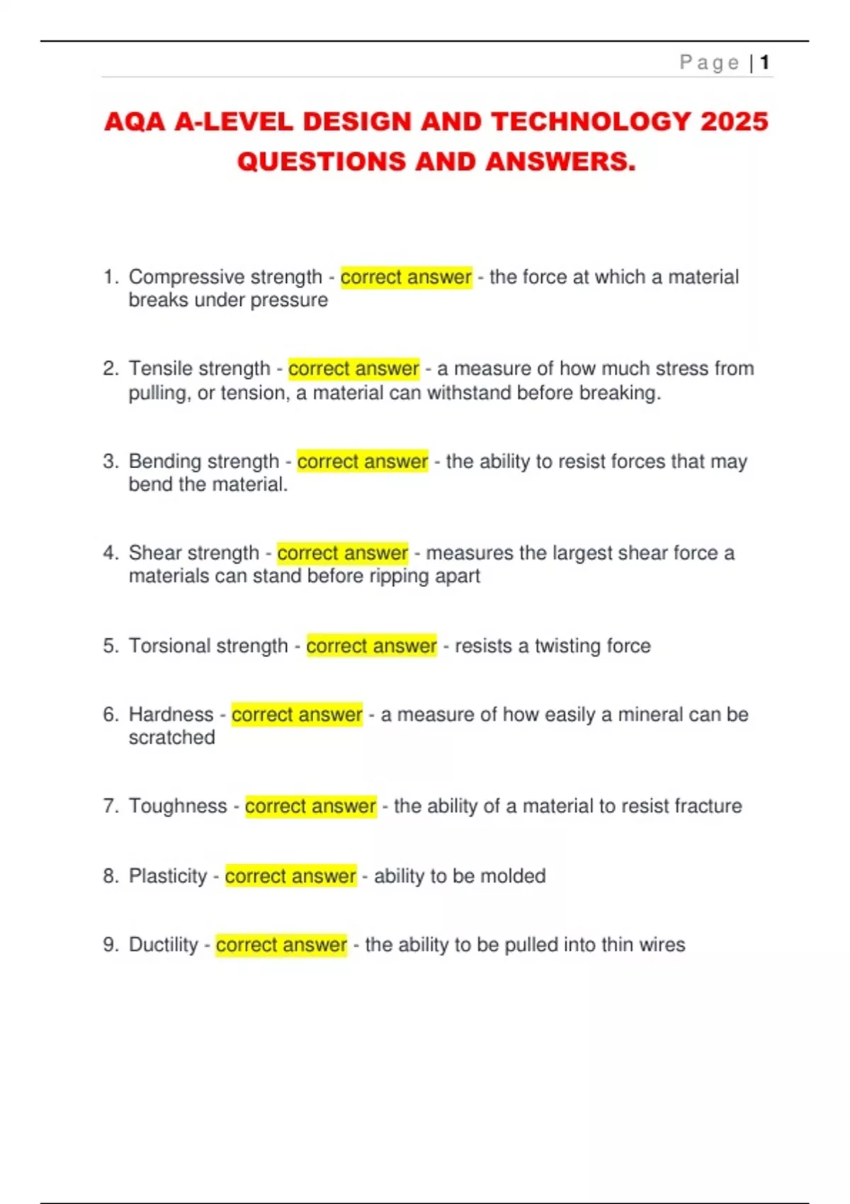 AQA A-LEVEL DESIGN AND TECHNOLOGY 2025 QUESTIONS AND ANSWERS.