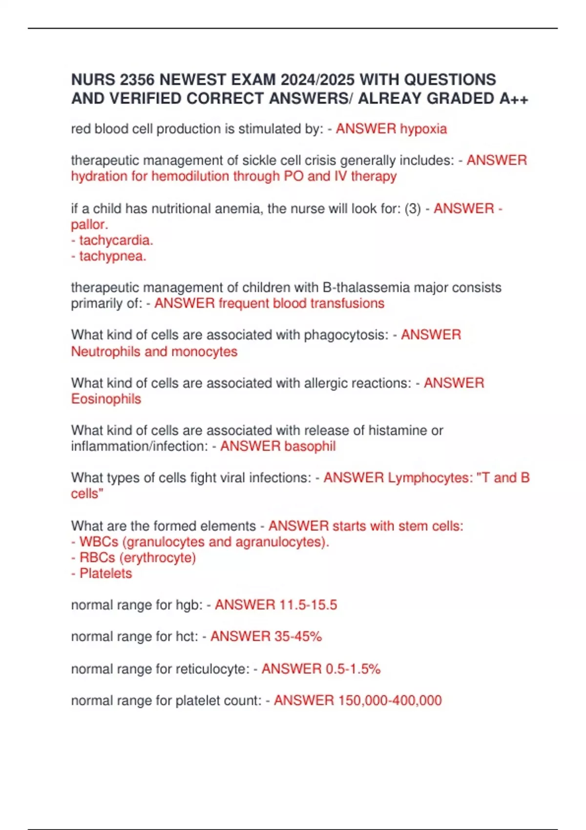NURS 2356 NEWEST EXAM 2024/2025 WITH DETAILED QUESTIONS AND VERIFIED CORRECT ANSWERS/ ALREADY GRADED A++