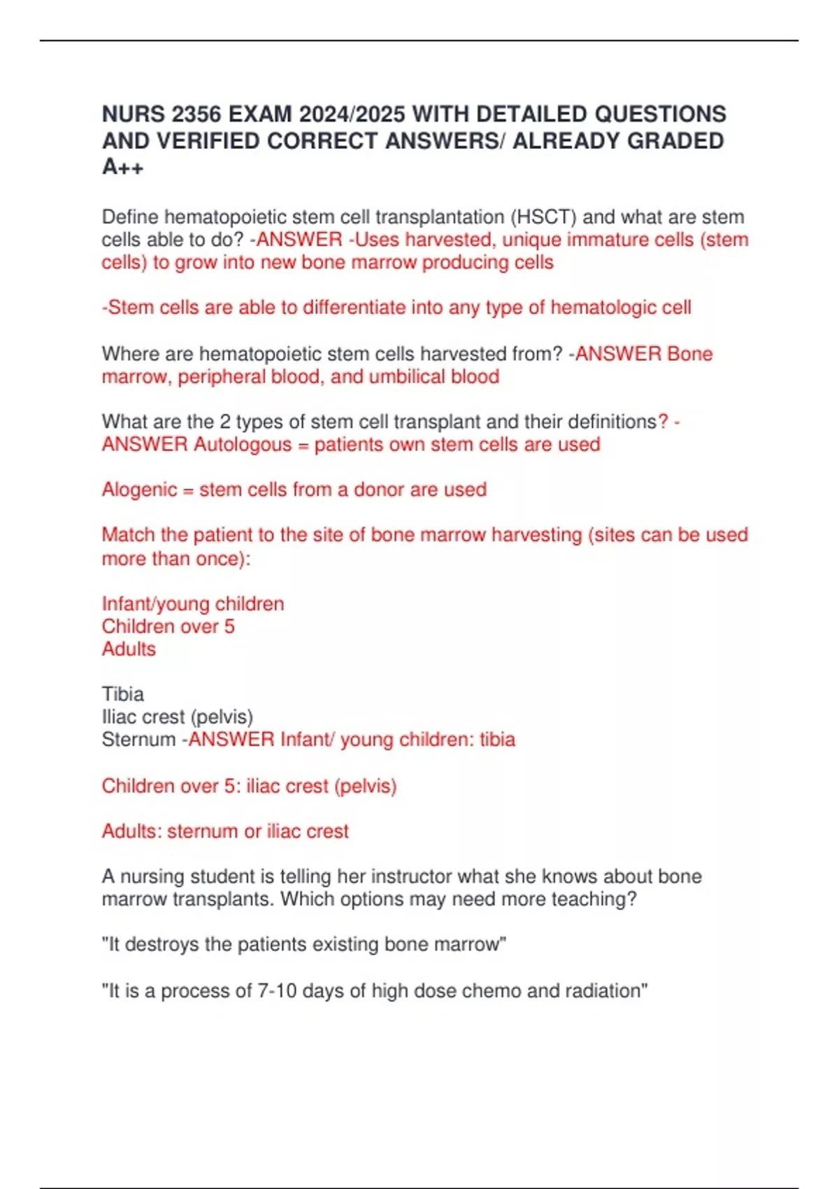 NURS 2356 EXAM 2024/2025 WITH DETAILED QUESTIONS