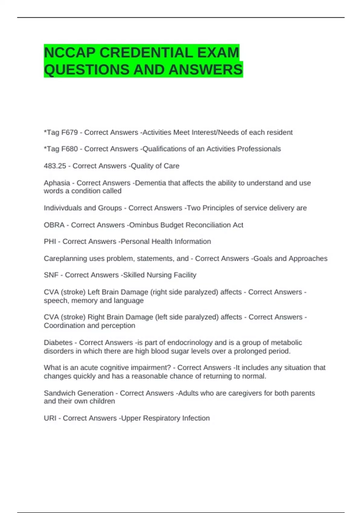 NCCAP CREDENTIAL EXAM QUESTIONS AND ANSWERS