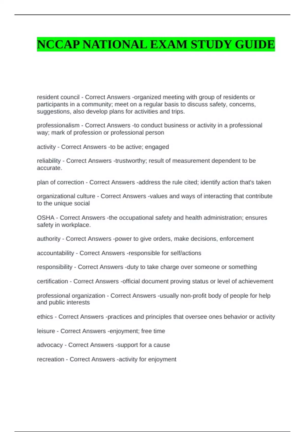 NCCAP NATIONAL EXAM STUDY GUIDE