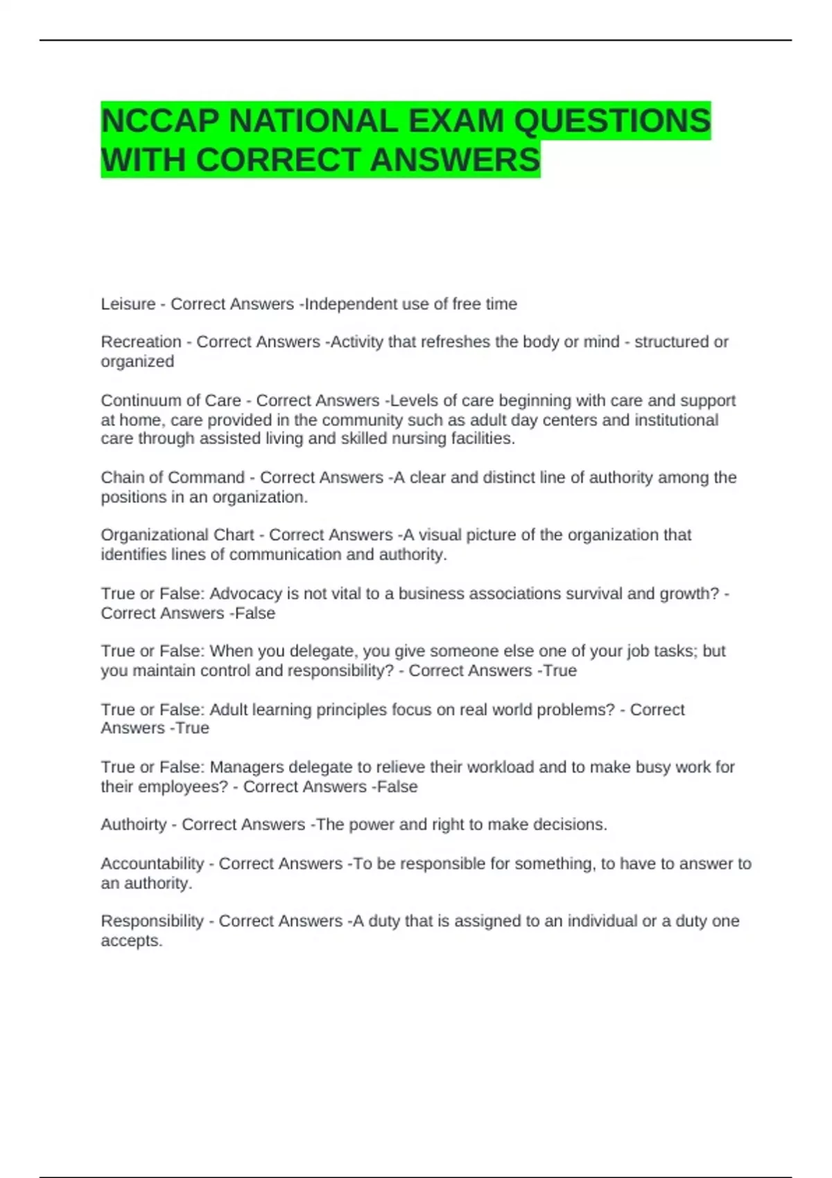 Chain of Command - Correct Answers -A clear and distinct line of authority among the