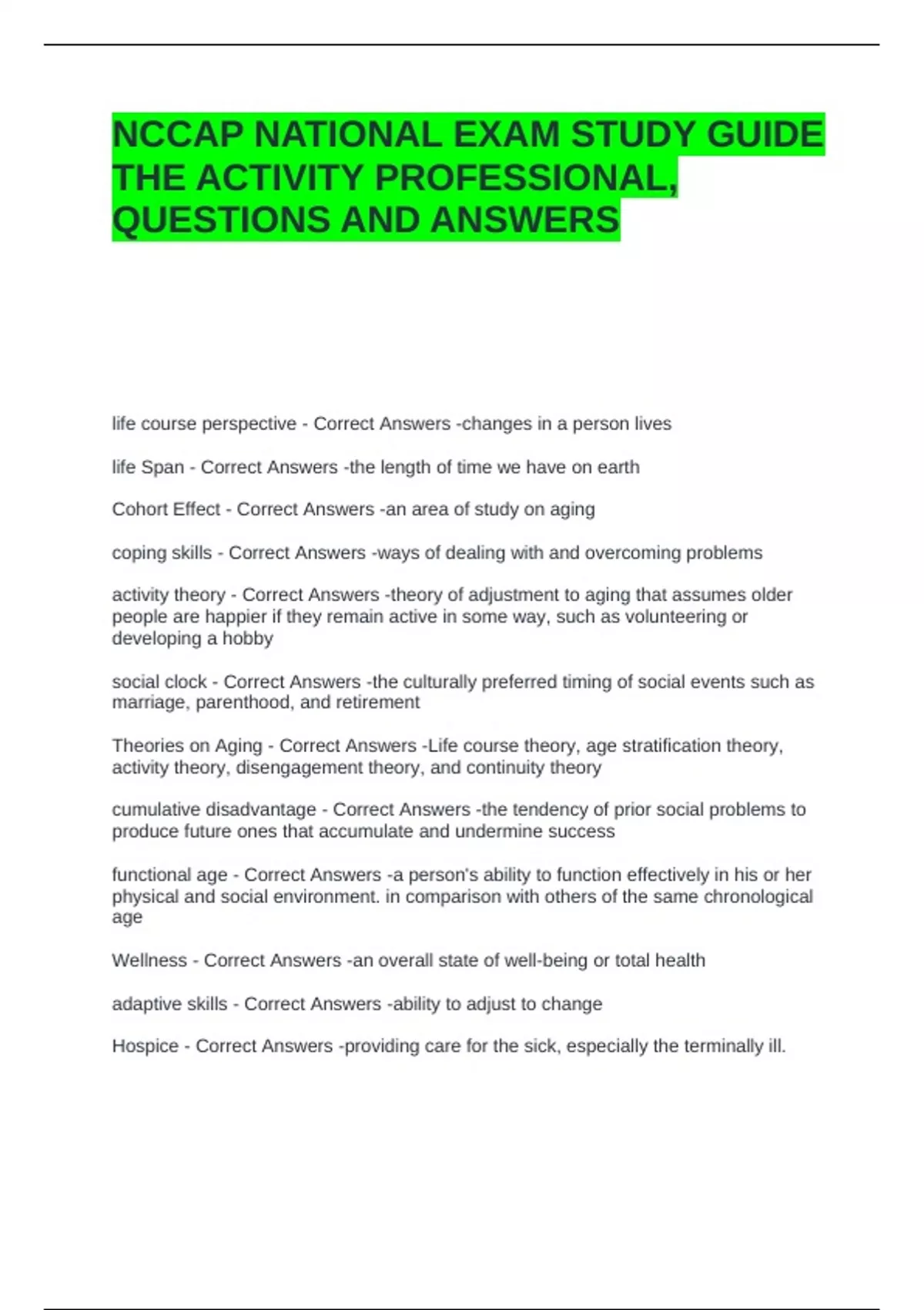 NCCAP NATIONAL EXAM STUDY GUIDE