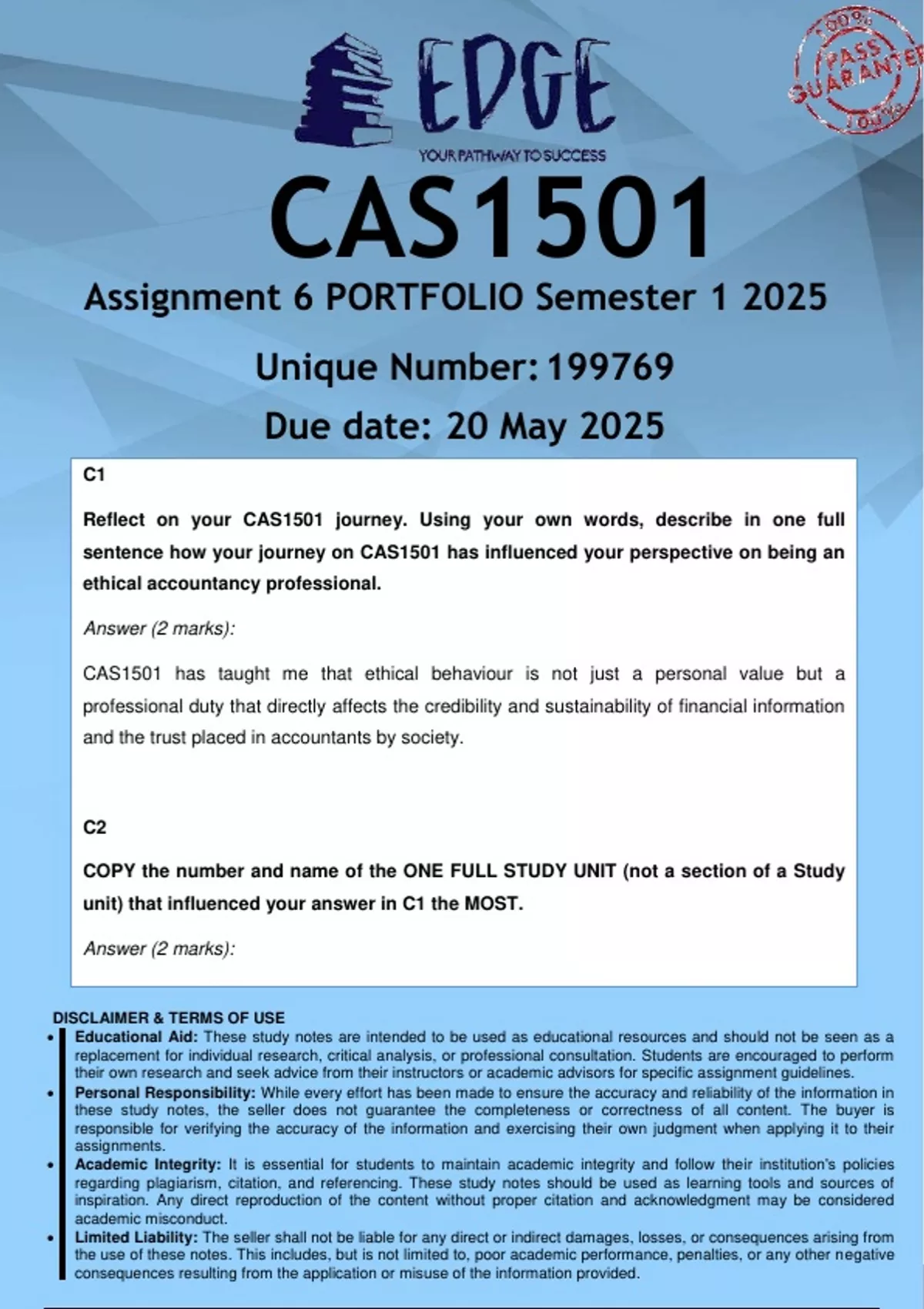success in CAS1501.