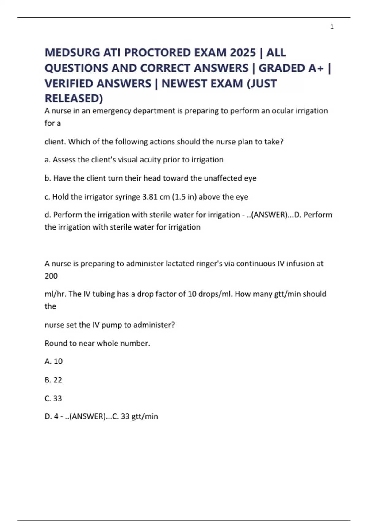 D. 4 - ..(ANSWER)...C. 33 gtt/min
