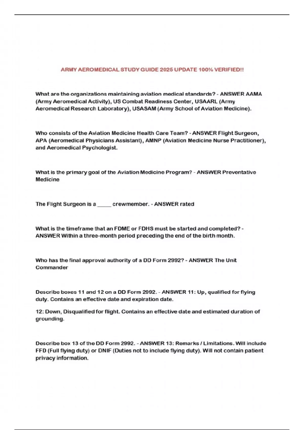 ARMY AEROMEDICAL STUDY GUIDE 2025 UPDATE 100% VERIFIED!!...