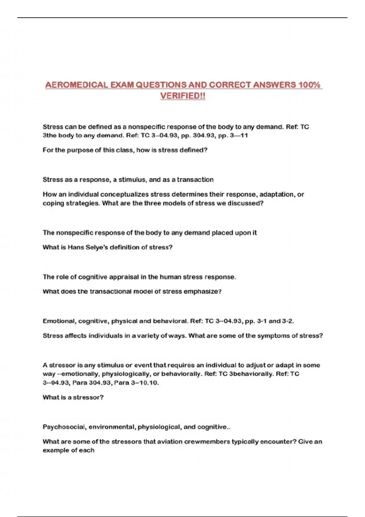 AEROMEDICAL EXAM QUESTIONS AND CORRECT ANSWERS 100% VERIFIED!!...