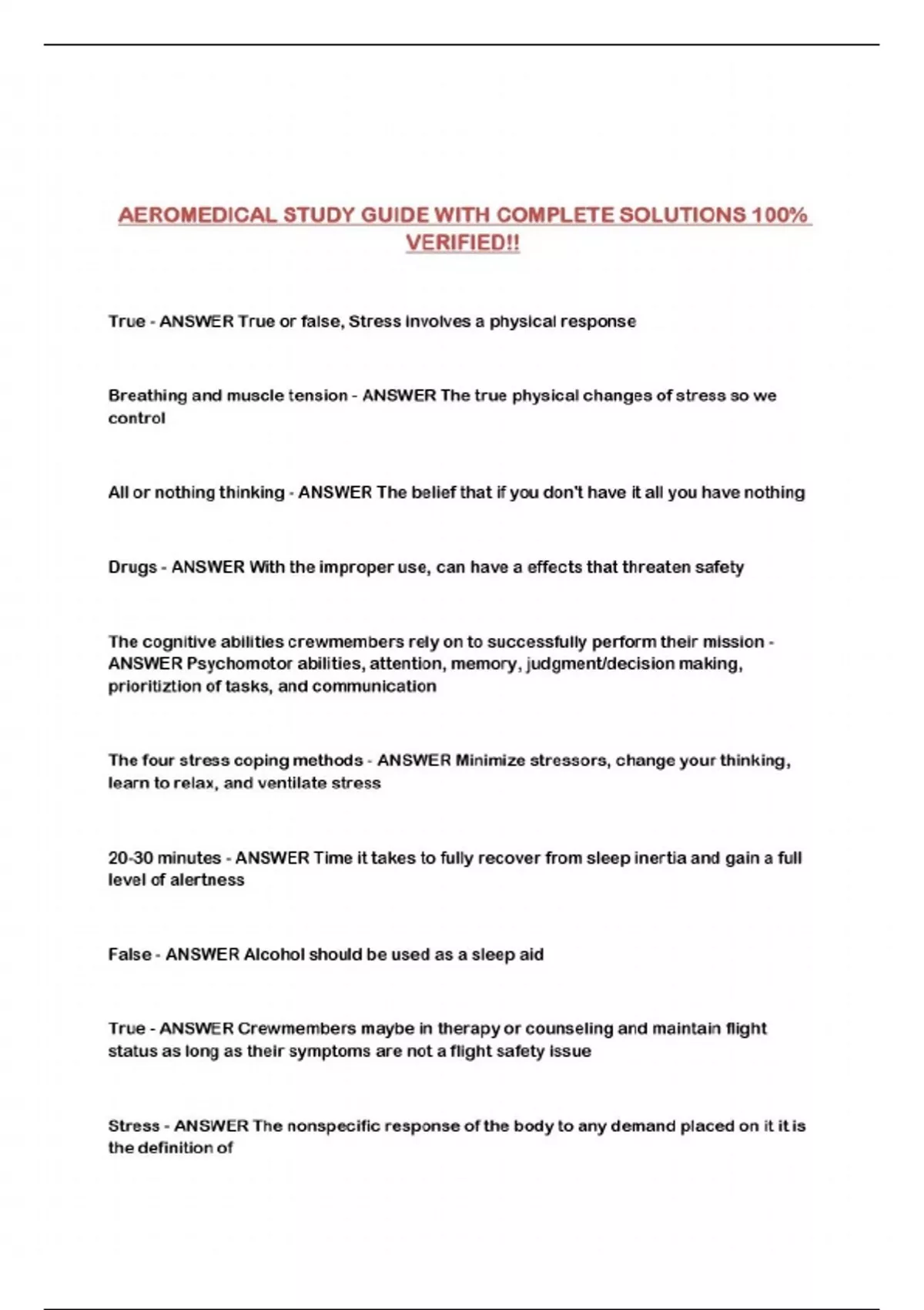 AEROMEDICAL STUDY GUIDE WITH COMPLETE SOLUTIONS 100% VERIFIED!!...