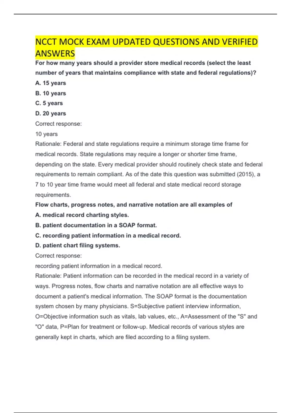 Rationale: Patient information can be recorded in the medical record in a variety of