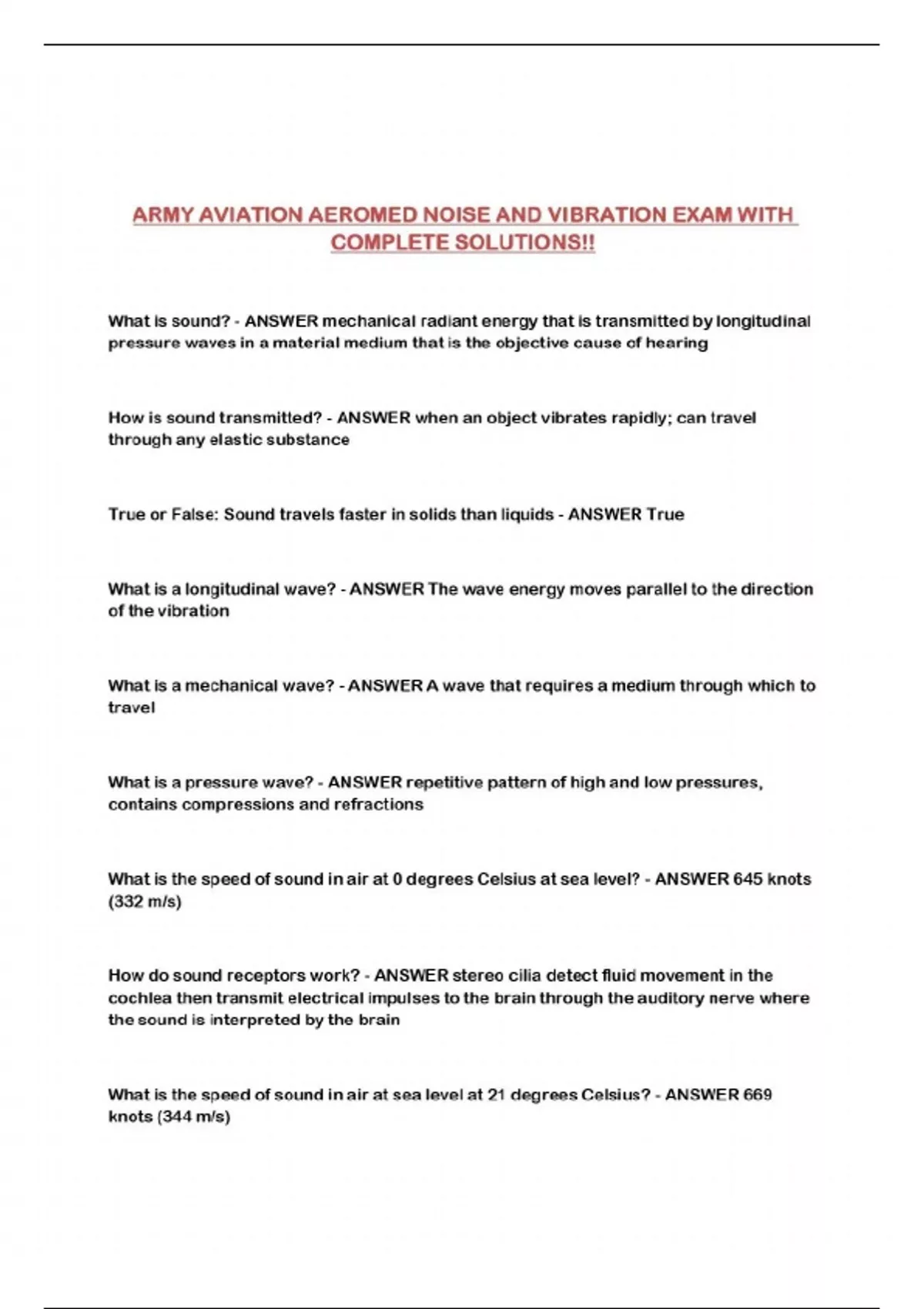 ARMY AVIATION AEROMED NOISE AND VIBRATION EXAM WITH COMPLETE SOLUTIONS!!...