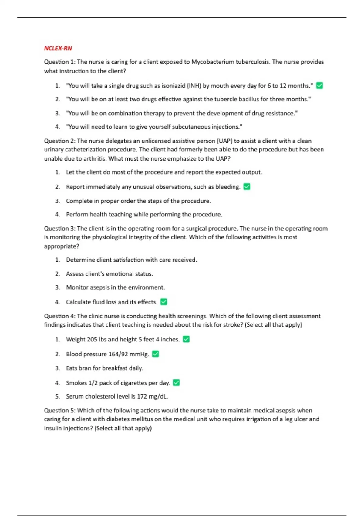 Question 1: The nurse is caring for a client exposed to Mycobacterium tuberculosis. The nurse provides