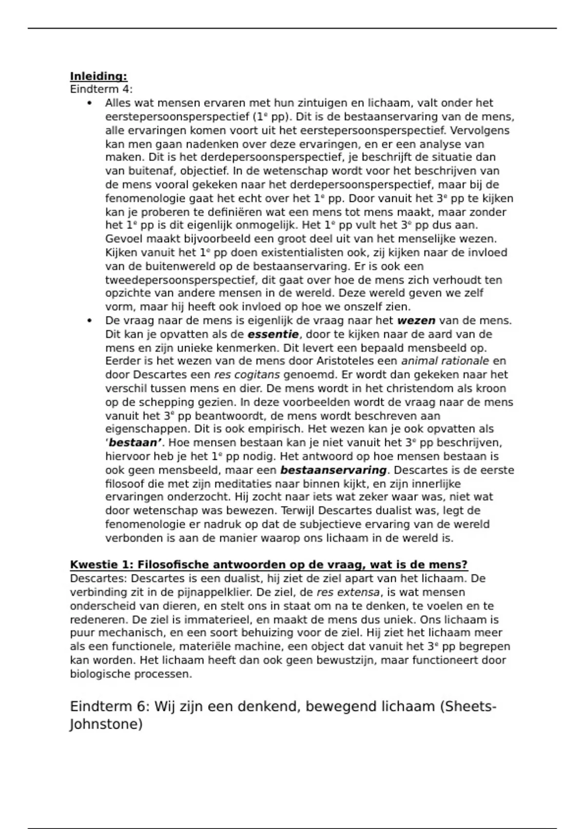 Eindterm 7: Wij staan in verhouding tot onszelf (Plessner)