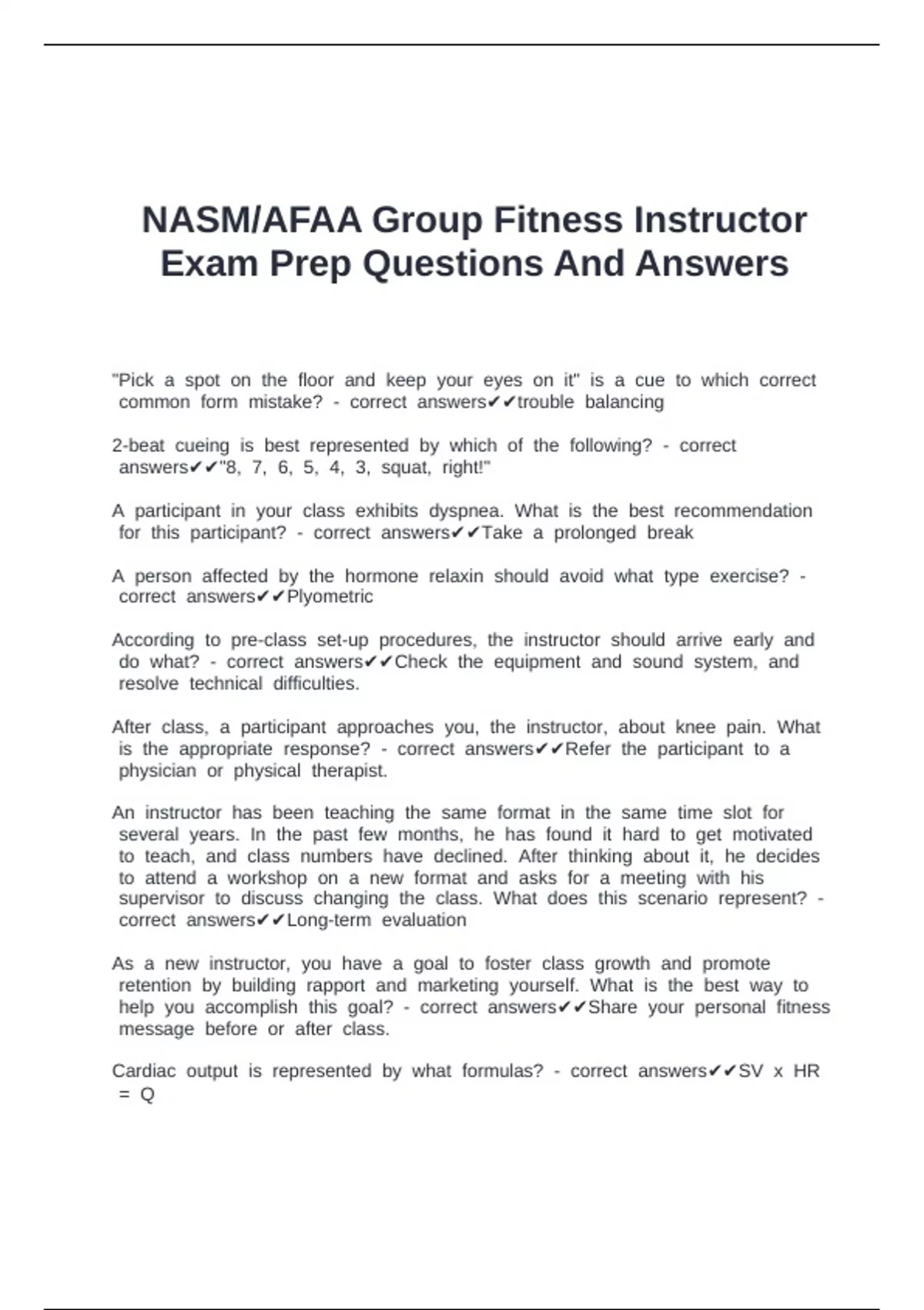 NASM/AFAA Group Fitness Instructor Exam Prep Questions And Answers
