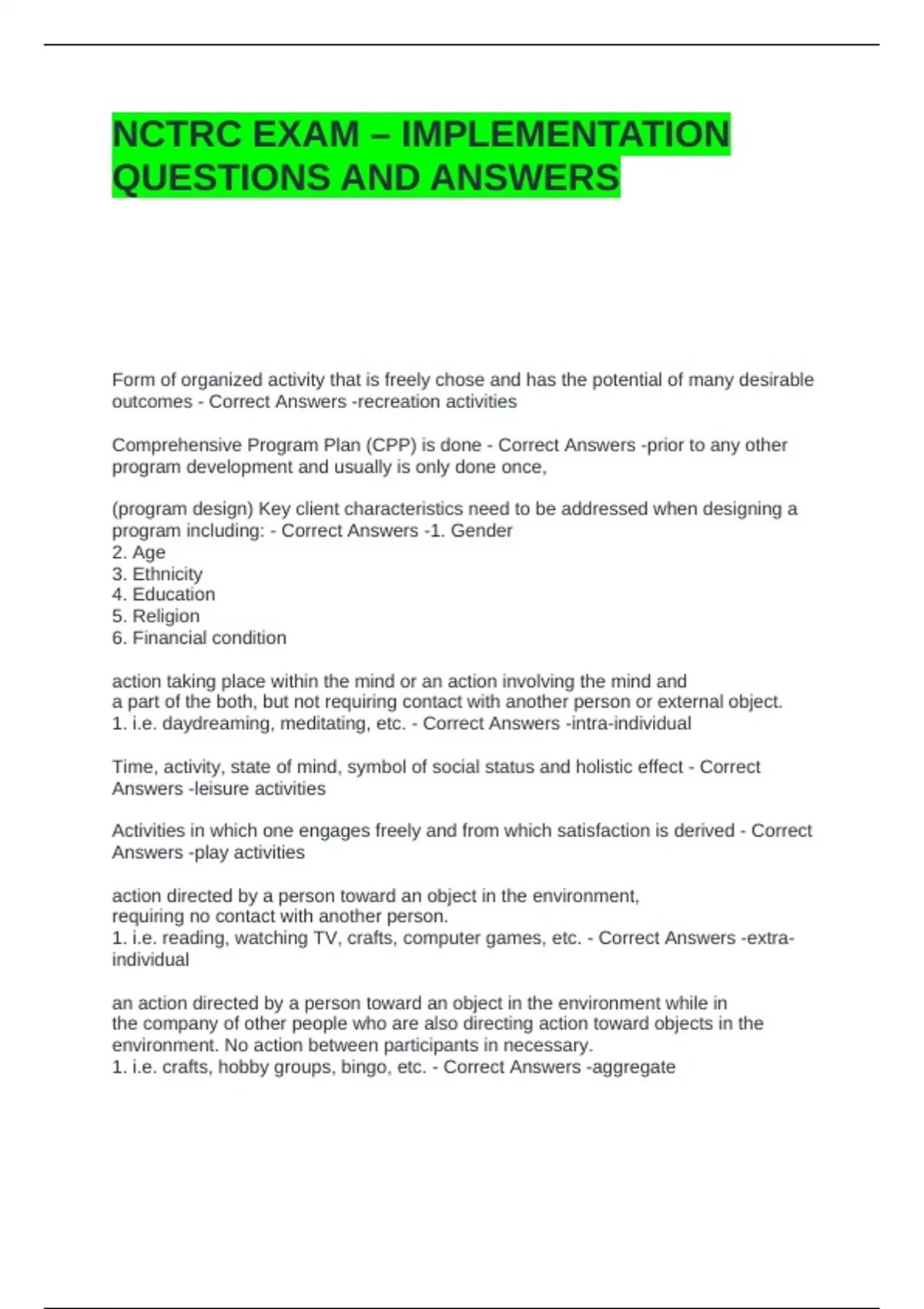 NCTRC EXAM – IMPLEMENTATION QUESTIONS AND ANSWERS