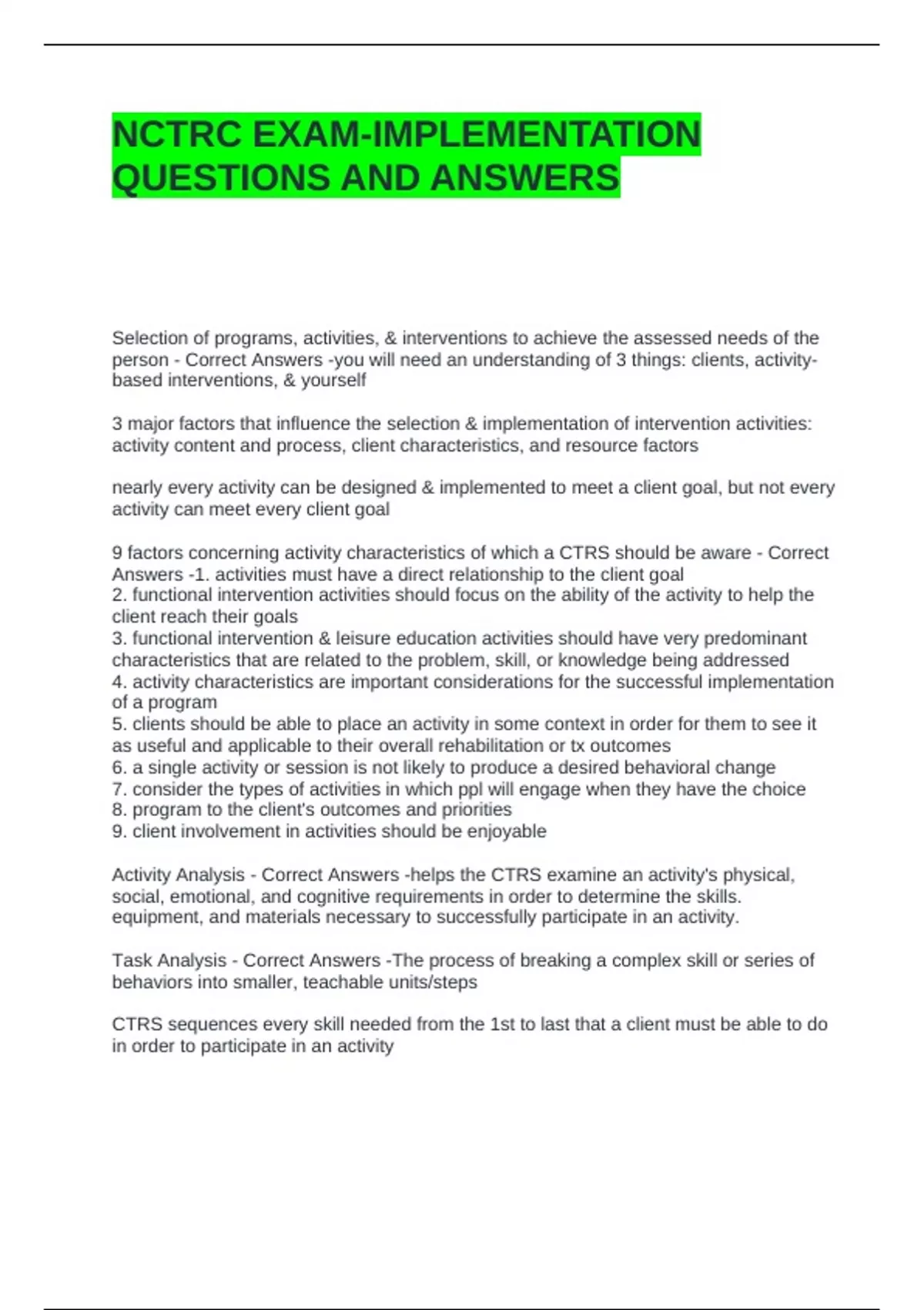 Leisure Skill Development - Correct Answers -very important to many of the clients that