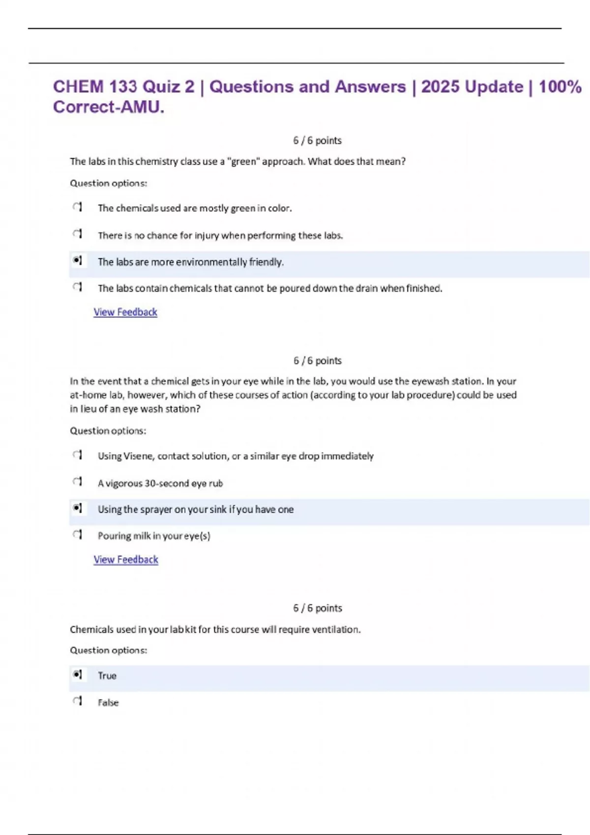 CHEM 133 Quiz 2 | Questions and Answers | 2025 Update | 100% Correct-AMU.