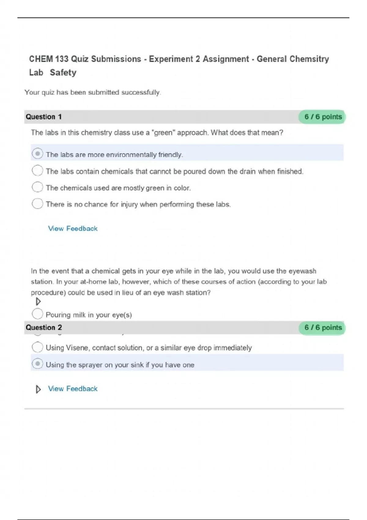 CHEM 133 Experiment 2 Assignment Lab | Questions and Answers | 2025 Update with complete solutions.