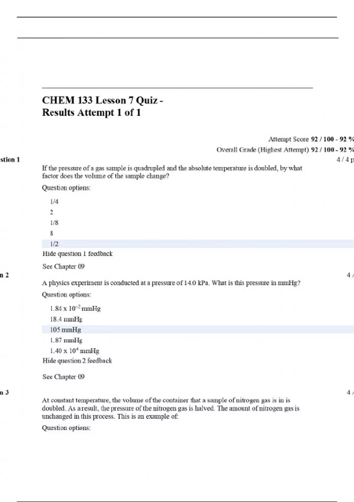 CHEM 133 Lesson 7 Quiz | Questions and Answers | 2025 Update | 100% Correct-AMU.