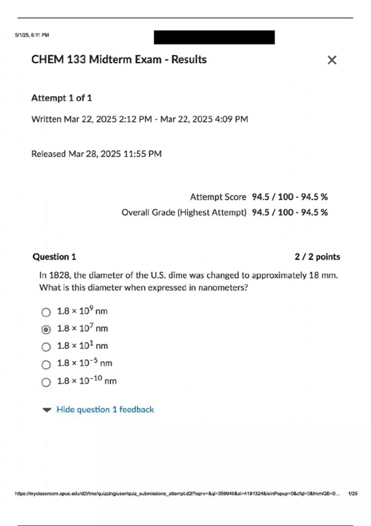 CHEM 133 Midterm Exam | Questions and Answers | 2025 Update | 100% Correct-AMU.