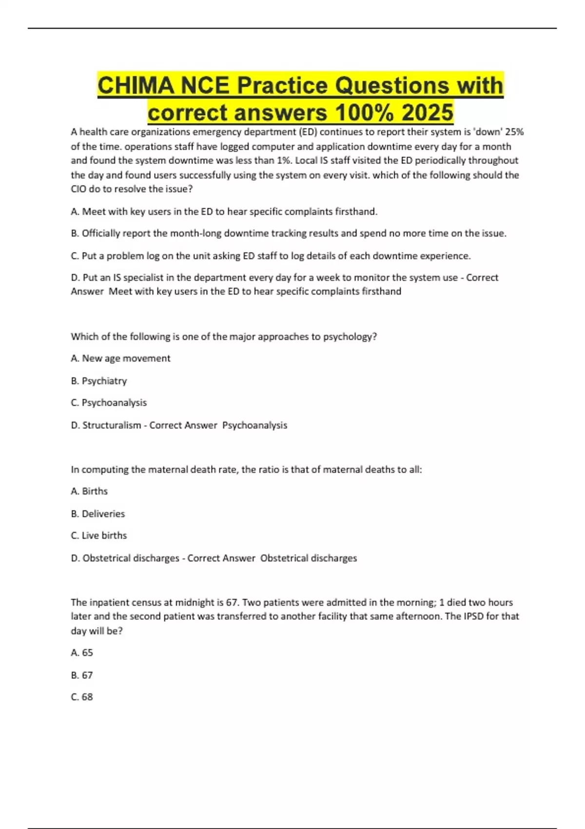 , D. 69 - Correct Answer 69