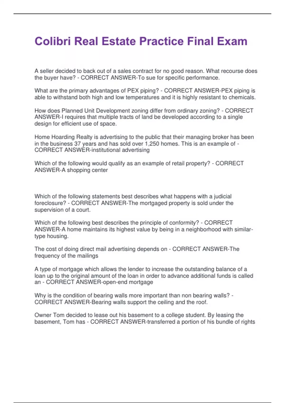 foreclosure? - CORRECT ANSWER-The mortgaged property is sold under the