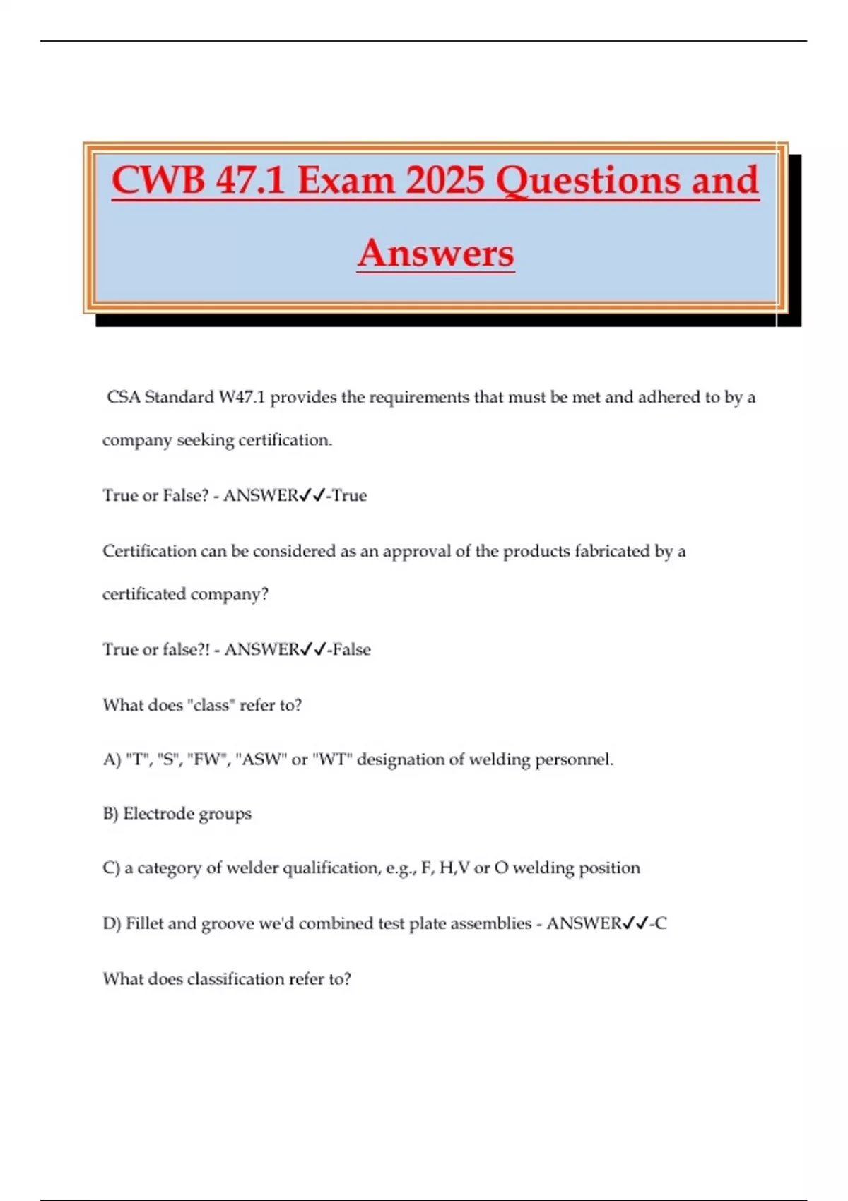 CWB 47.1 Exam 2025 Questions and