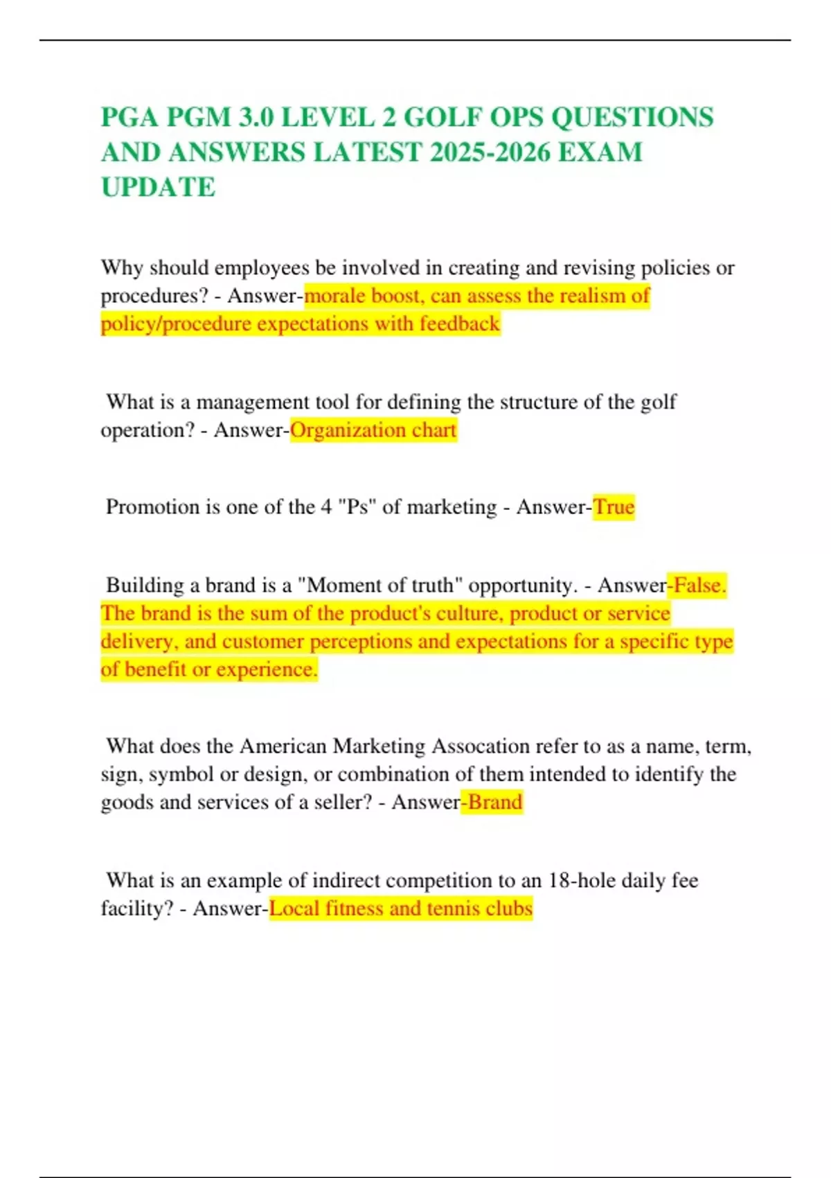 PGA PGM 3.0 LEVEL 2 GOLF OPS QUESTIONS AND ANSWERS LATEST EXAM UPDATEPGA PGM 3.0 LEVEL 2 GOLF OPS QUESTIONS AND ANSWERS LATEST EXAM UPDATEPGA PGM 3.0 LEVEL 2 GOLF OPS QUESTIONS AND ANSWERS LATEST EXAM UPDATE