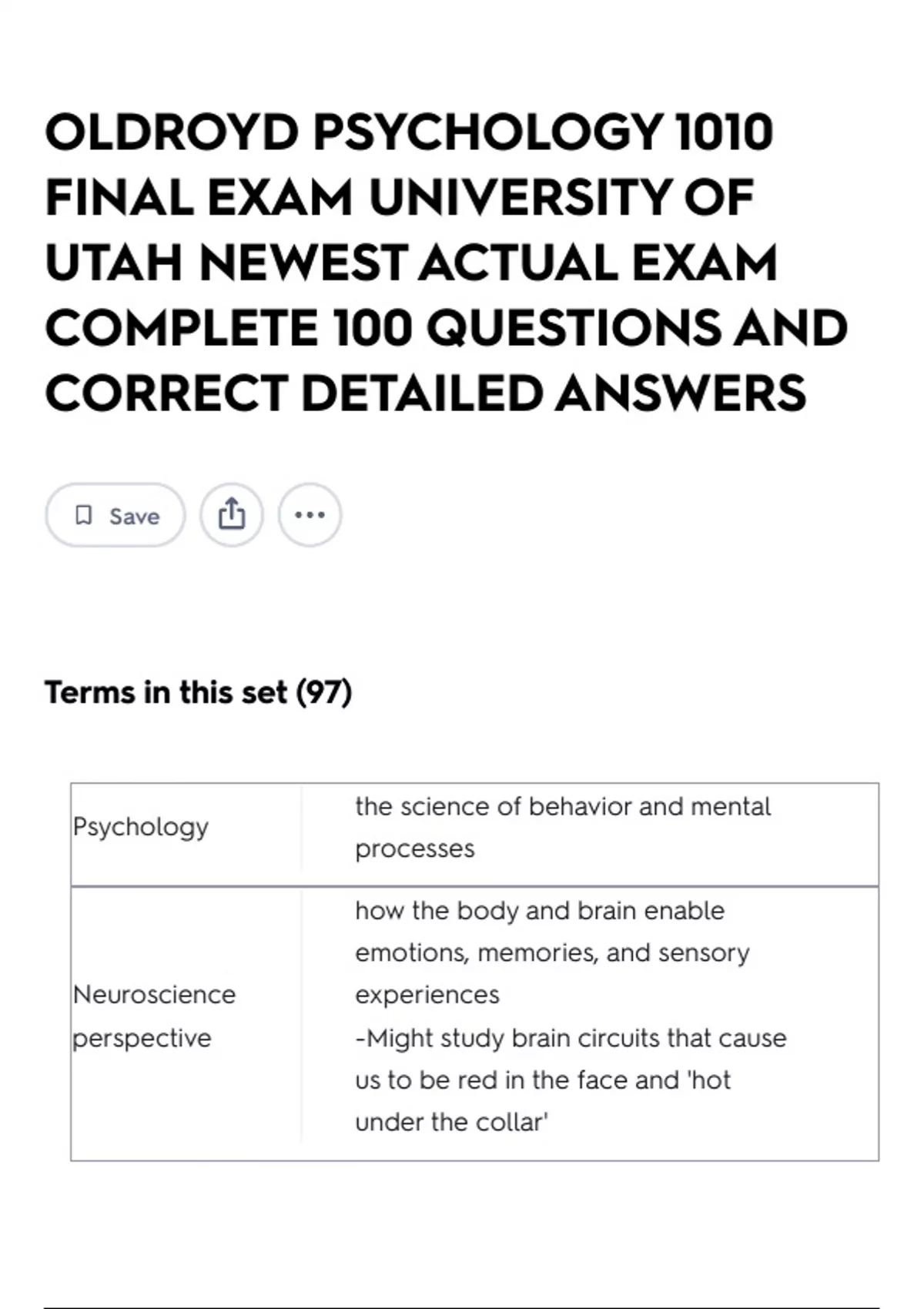 OLDROYD PSYCHOLOGY 1010 FINAL EXAM UNIVERSITY OF UTAH NEWEST ACTUAL EXAM COMPLETE 100 QUESTIONS AND CORRECT DETAILED ANSWERS