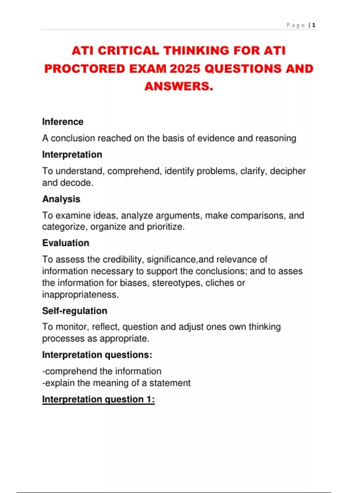 ATI CRITICAL THINKING FOR ATI PROCTORED EXAM 2025 QUESTIONS AND ANSWERS.