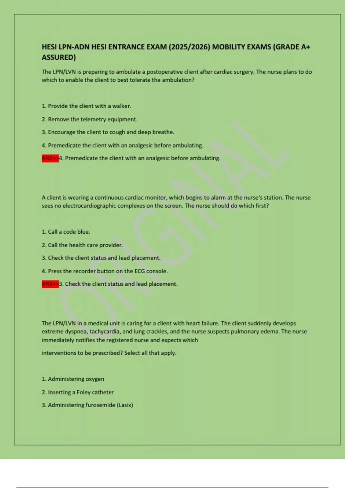 HESI LPN-ADN HESI ENTRANCE EXAM (2025/2026) MOBILITY EXAMS (GRADE A+