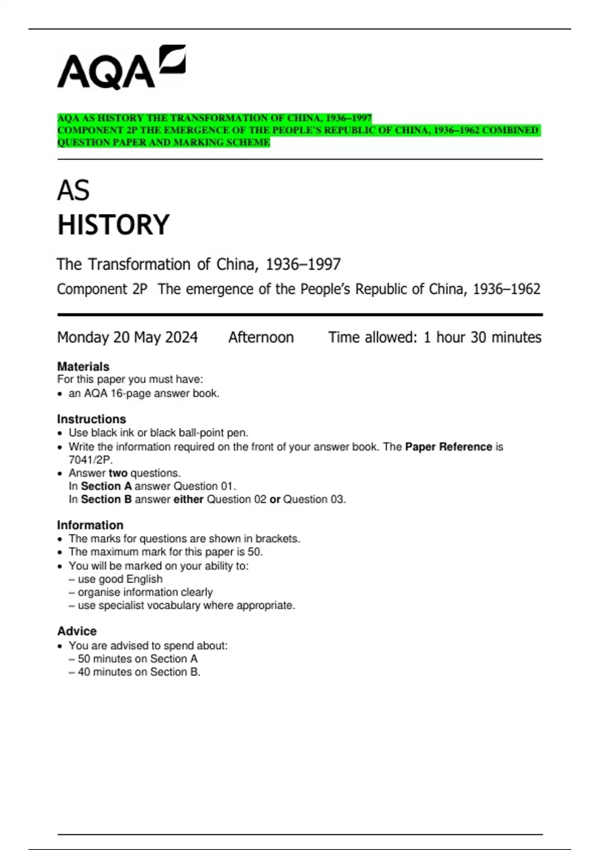 • The maximum mark for this paper is 50.