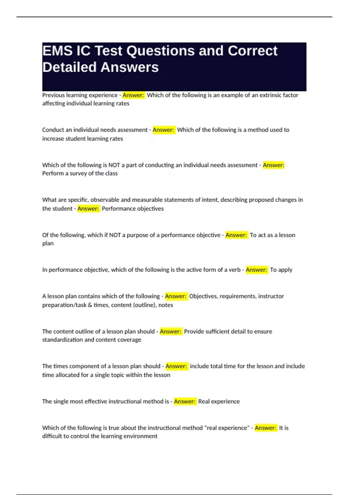 A lesson plan contains which of the following - Answer: Objectives, requirements, instructor